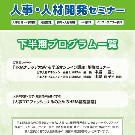 2025年人事・人材開発セミナー下半期プログラム一覧のご案...